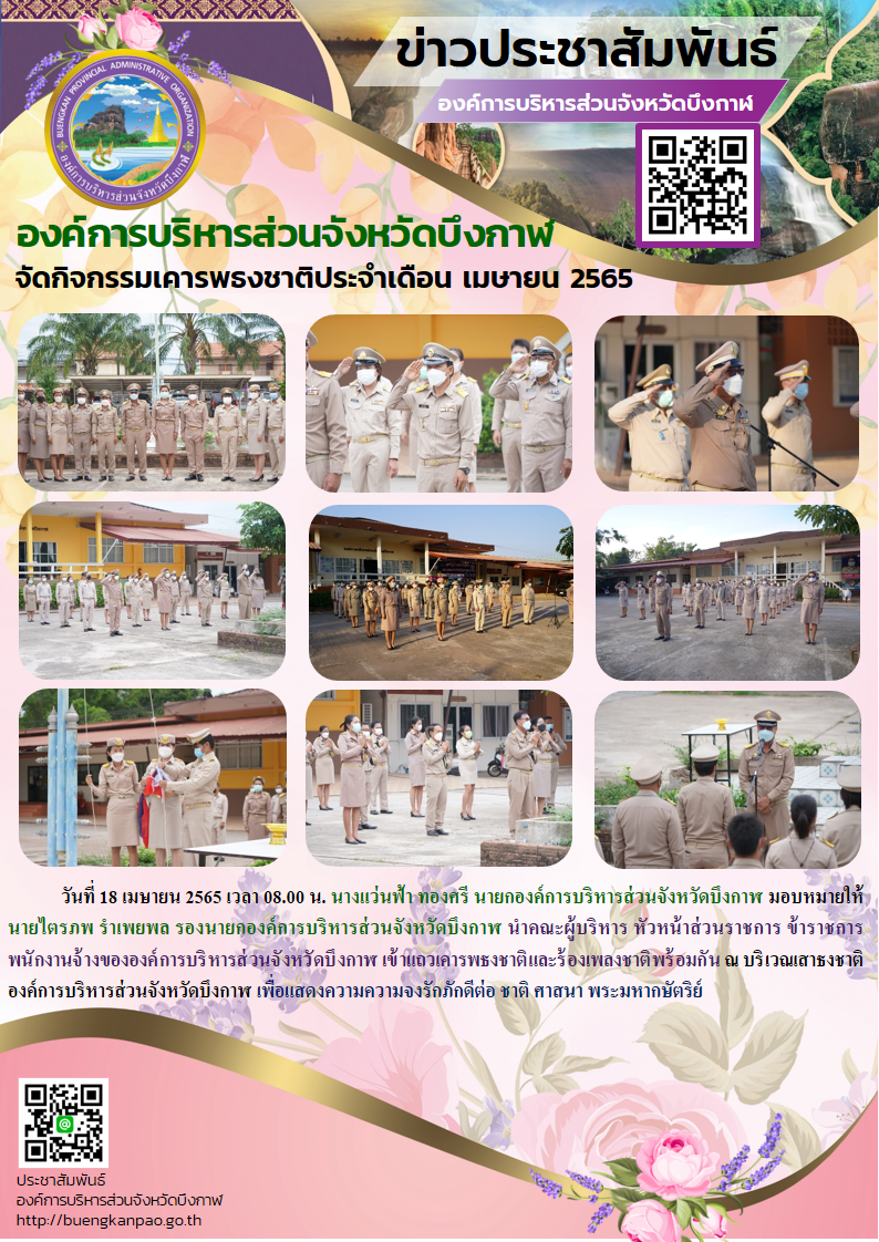 องค์การบริหารส่วนจังหวัดบึงกาฬ จัดกิจกรรมเคารพธงชาติประจำเดือน เมษายน 2565
